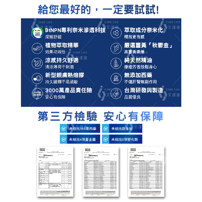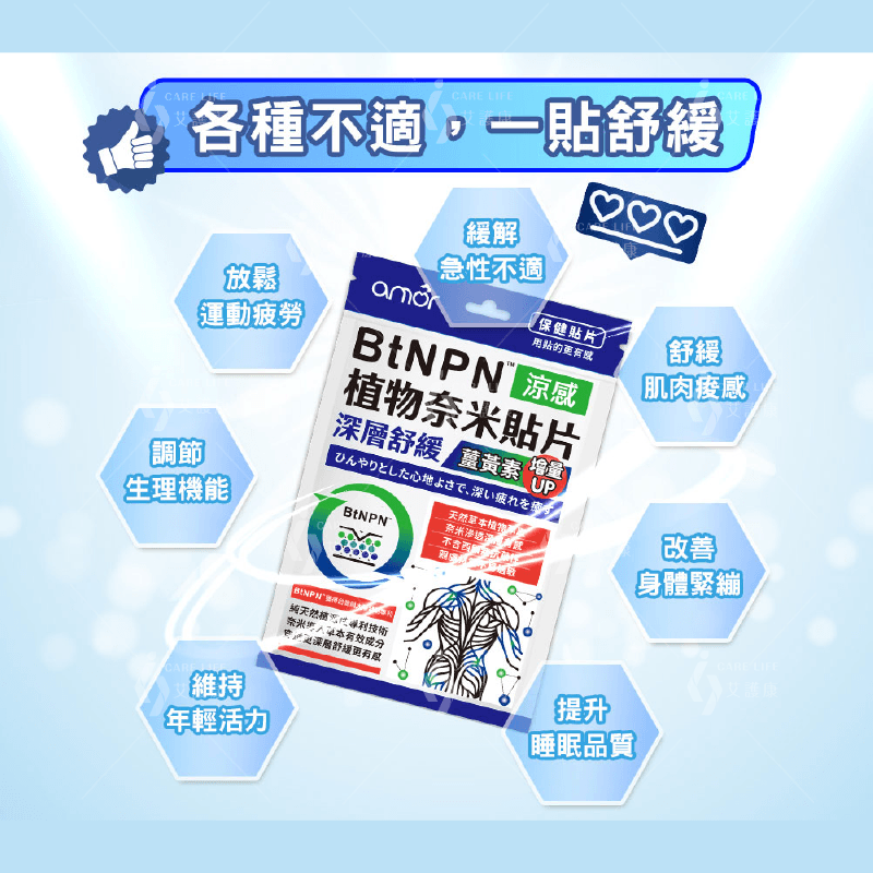 BtNPN植物奈米貼片【3不添加】 1.不含西藥 無抗藥性無負 2.不含水楊酸 不傷肝臟 3.不含類固醇 不傷腎臟